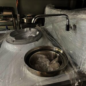 | 2. Kích thước: 1000x850x800/300 công suất quạt 1*120w Chất liệu: Inox 201/ + khung thép tĩnh điện, Đánh lửa IC Kiềng gang liền khối Gờ đặt chảo tiện dụng |