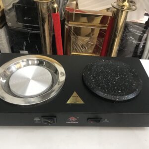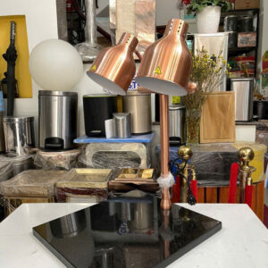 Đèn hâm nóng thức ăn 2 bóng đồng đế đá CN đen 121166D là thiết bị giữ nhiệt cao cấp, thiết kế hiện đại với hai bóng đèn đồng ánh kim nổi bật và đế đá granite đen sang trọng, giúp giữ nóng món ăn hiệu quả và tăng tính thẩm mỹ cho không gian bếp hoặc quầy buffet. Sản phẩm phù hợp sử dụng trong nhà hàng, khách sạn, tiệc buffet, trung tâm hội nghị, tiệc cưới – nơi yêu cầu món ăn luôn được giữ ở nhiệt độ lý tưởng trong suốt thời gian phục vụ.