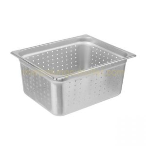 Khay inox có lỗ 1/2 có ngấn chống kẹt dày 0.5 sâu đựng thực phẩm được làm chất liệu inox 304, với độ sâu 150, 100, 65 mm khay có dung tích chưa là 9 lít. Về độ dày thì khay cho nhiêu đồ dày khác nhau, ở đây chúng tôi bán duy nhất. Xếp chồng nhiều khay GN lên nhau giúp tiết kiệm không gian làm việc của bếp… Dùng để đựng trái cây, hoa quả, thực phẩm.