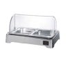 Khay đựng thức ăn buffet inox tròn nắp PC được làm bằng chất liệu inox cùng với nắp PC giúp thực khách có cái nhìn trực quan về các món ăn đựng bên trong khay. Nắp PC đặt trên khay mở lên 90 rất tiện để lấy thức ăn bên trong khay.