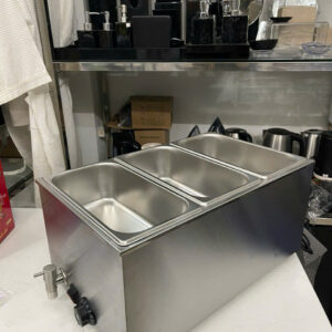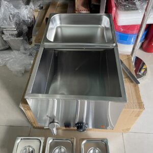 Lò đun cách thủy giữ nóng thức ăn – Bain Marie là thiết bị chuyên dụng trong nhà hàng, khách sạn, quầy buffet giúp giữ nóng thực phẩm hiệu quả mà không làm khô hay cháy đáy món ăn. Sản phẩm sử dụng cơ chế làm nóng gián tiếp bằng nước (cách thủy), kết hợp với bộ điều chỉnh nhiệt độ và van xả tiện lợi. Thân lò được làm từ inox cao cấp, bền bỉ, chống gỉ sét và dễ vệ sinh. Bain Marie là lựa chọn lý tưởng cho các bếp ăn công nghiệp, tiệc buffet, căng tin, hoặc bất kỳ nơi nào cần giữ thức ăn luôn nóng hổi, đảm bảo chất lượng và vệ sinh an toàn thực phẩm.